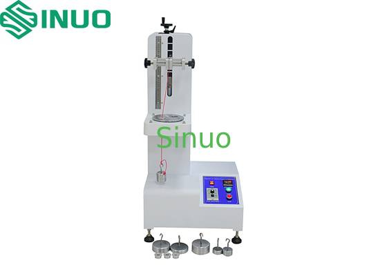 Parametri regolabili tra cui velocità di rotazione (10±2 RPM), pesi (0,3–2 kg) e altezze di prova (260–320 mm)